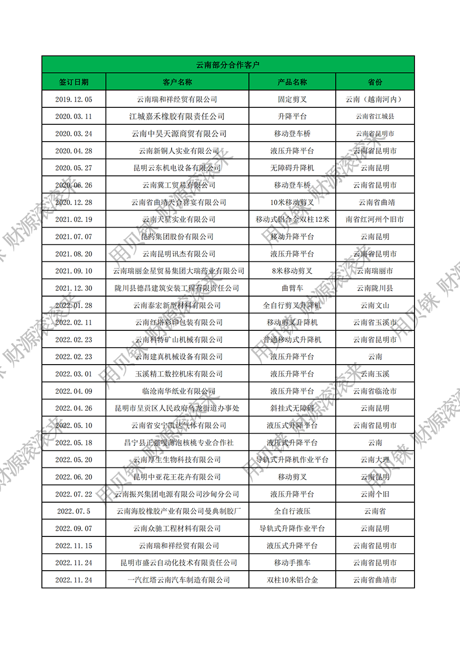 云南部分客戶