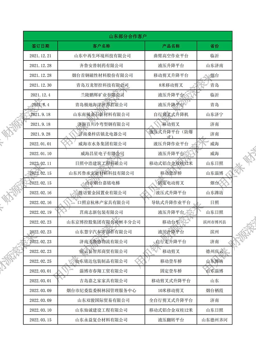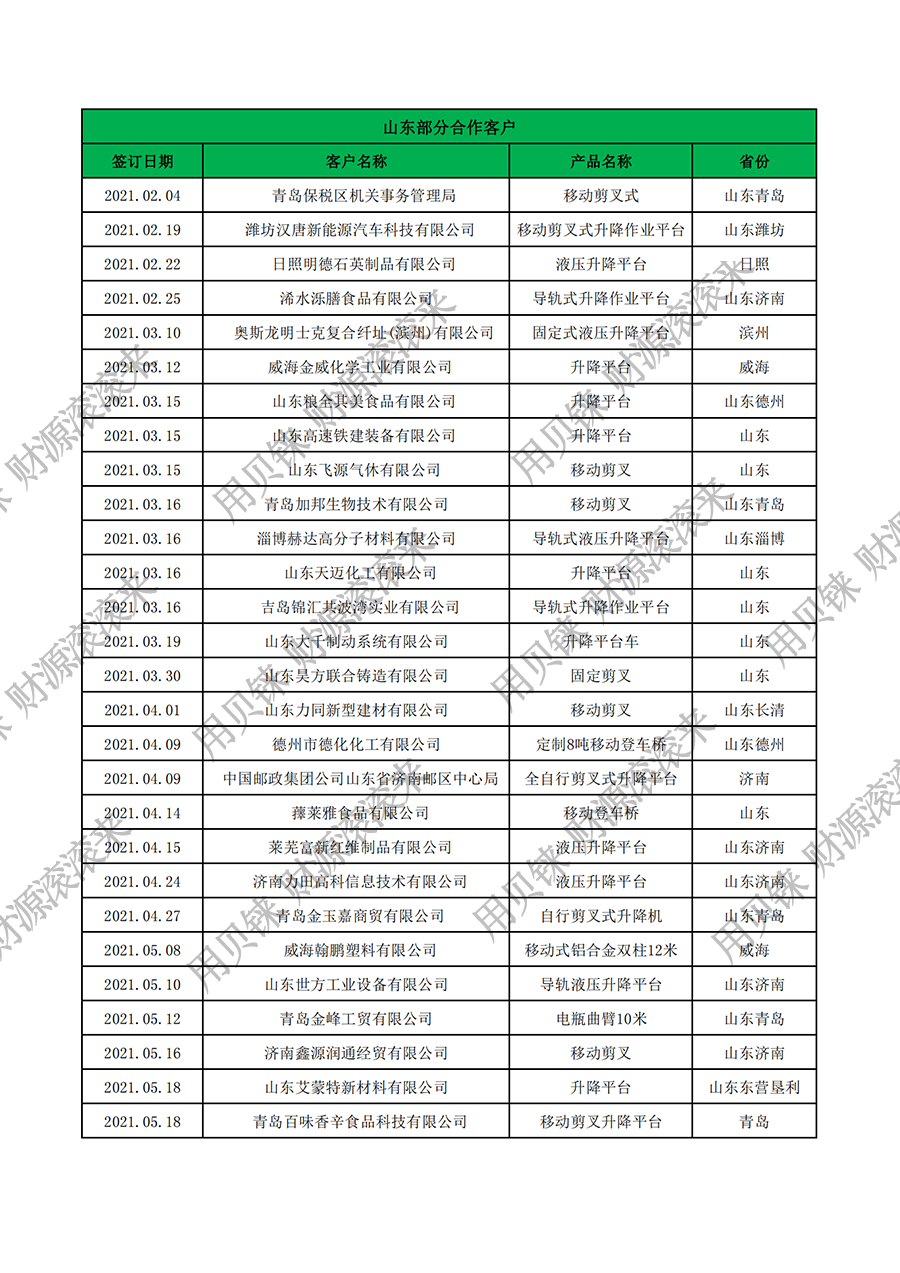 山東部分客戶2