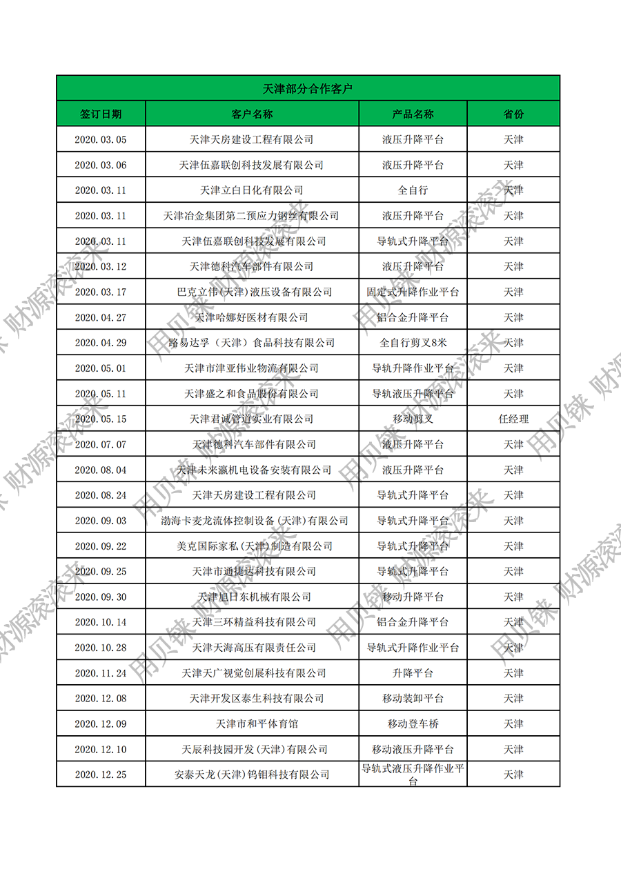 天津部分客戶