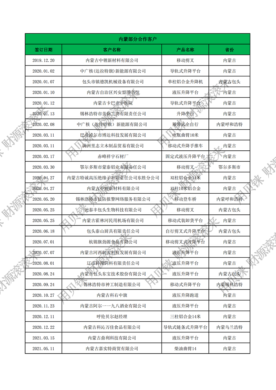 內(nèi)蒙古部分客戶