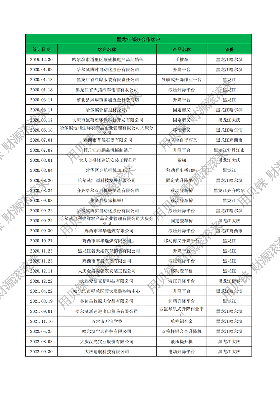 黑龍江部分客戶