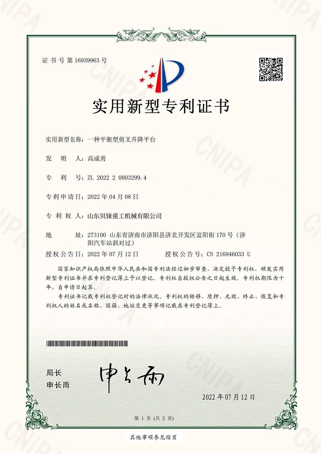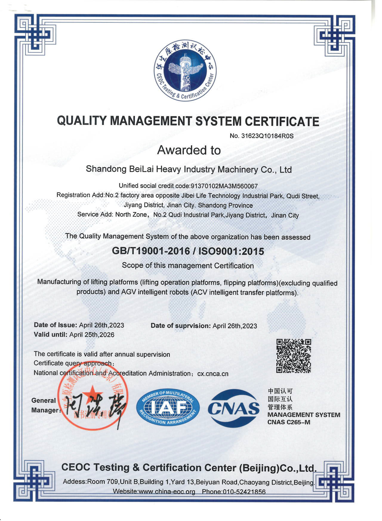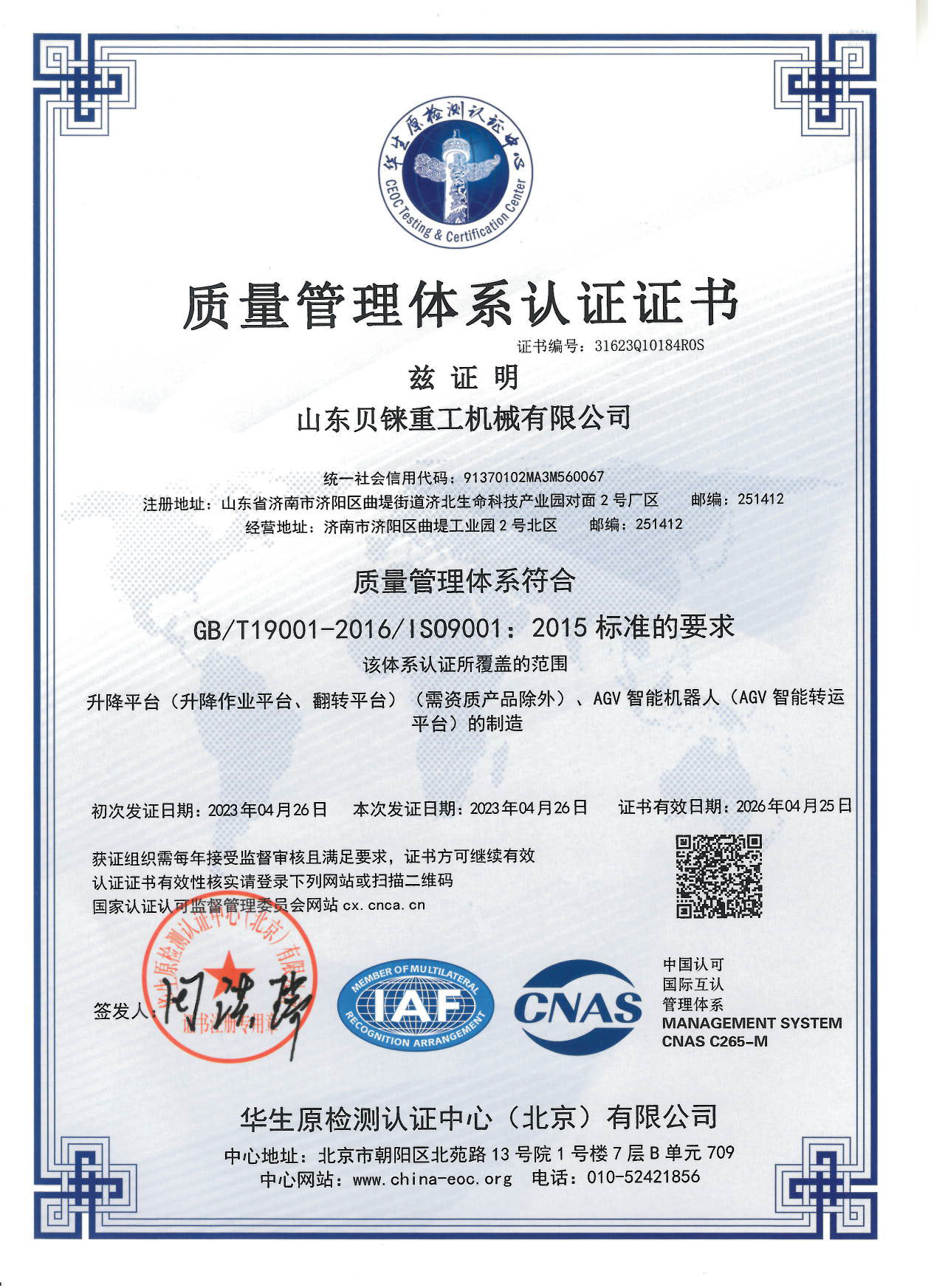 質(zhì)量體系認(rèn)證書