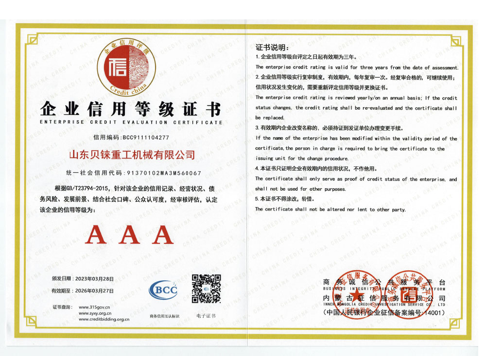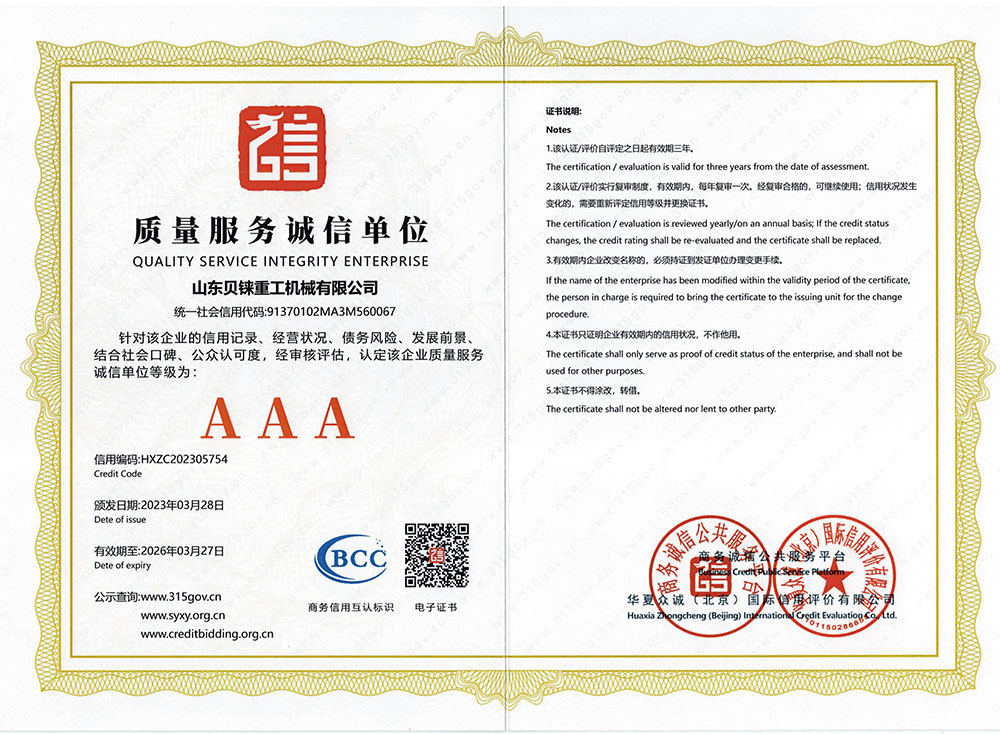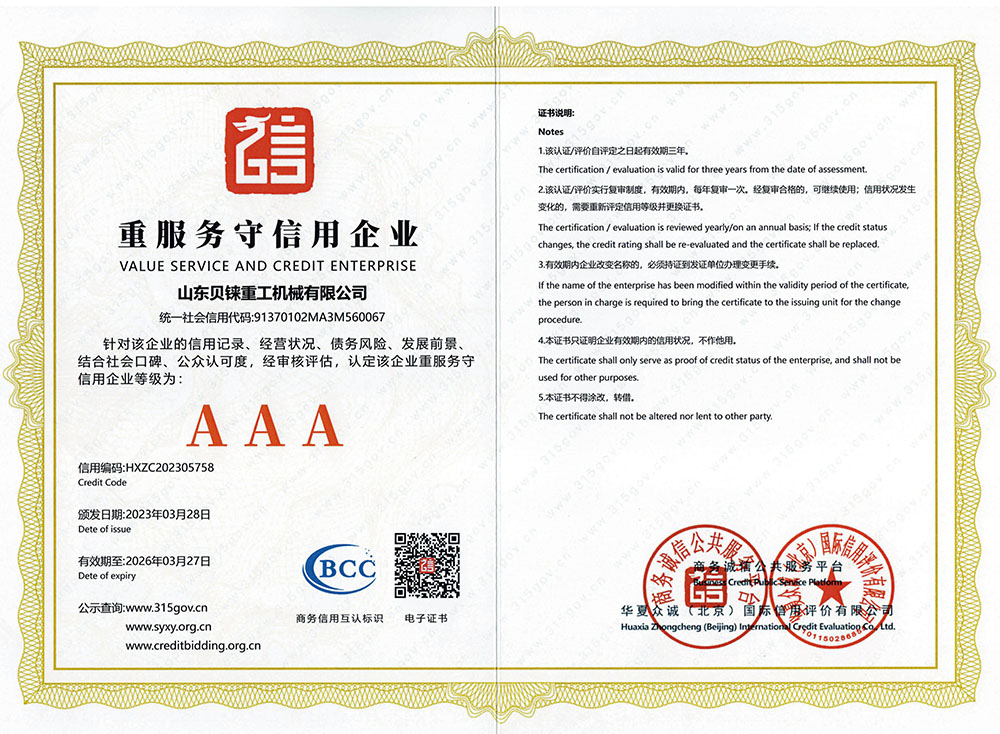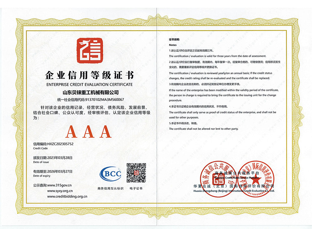 AAA信用等級(jí)證書