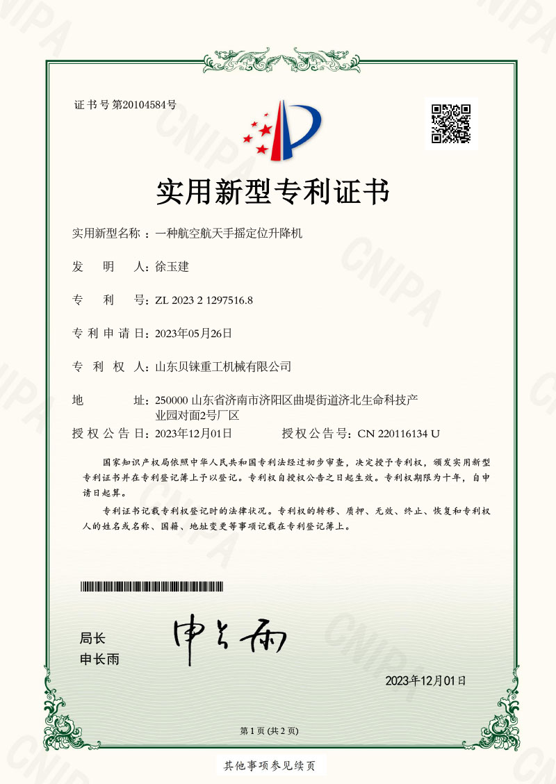 一種航天航空手搖定位升降機(jī)